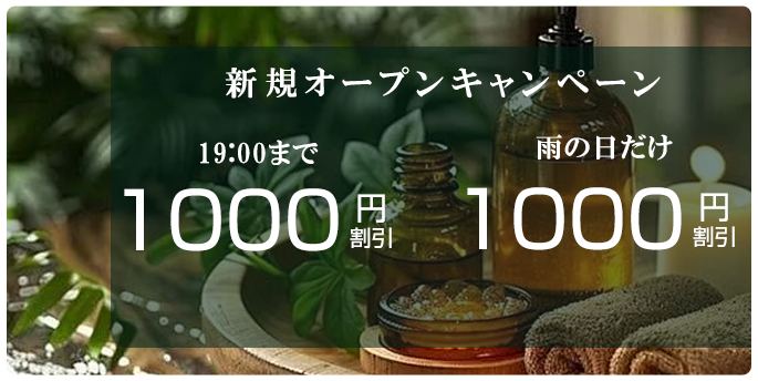 当店では、アロマオイルの効能と当店自慢のセラピストによるリンパマッサージの相乗効果による、癒しのひとときをお客様お一人お一人にお届けしております、自然で心やすらぐ優美な香りを、施術中はもちろんご帰宅お休みになってから翌日朝目覚めでまで楽しんで頂けます、どうぞゆっくりご堪能ください。